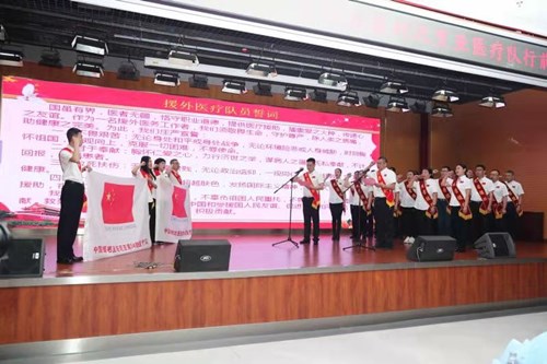 全體隊(duì)員面向隊(duì)旗進(jìn)行莊嚴(yán)宣誓,鄭重承諾將牢記援外醫(yī)療光榮使命,不辜負(fù)祖國(guó)人民重托,發(fā)揚(yáng)“不畏艱苦、甘于奉獻(xiàn)、救死扶傷、大愛無疆”的中國(guó)醫(yī)療隊(duì)精神,為增進(jìn)中國(guó)和受援國(guó)人民友誼、促進(jìn)世界和平做出積極貢獻(xiàn)。