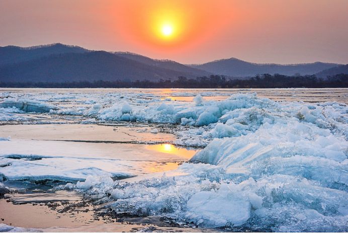 在烏蘇里江的源頭虎頭欣賞開(kāi)江壯景,別有一番風(fēng)味??傻巧蟻辛⒃诮系臇|方第一塔,遠(yuǎn)眺俄羅斯對(duì)岸,居高而下,欣賞烏蘇里江冰層炸裂、冰排涌動(dòng)的全景,聆聽(tīng)冰排漂流撞擊發(fā)出的陣陣聲響。