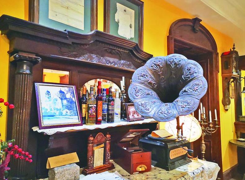 走進餐廳內(nèi),走廓里、過道處、墻壁上……到處是“冰城記憶”:有民國時期哈爾濱餐飲商號老發(fā)票、上世紀20至40年代哈爾濱老地圖、中央大街輔街原版老建筑圖紙;清末和民國時期中西菜譜、民國時期哈爾濱俄文酒標、哈爾濱老洋行食材發(fā)票;俄式老茶炊和中東鐵路鑄鐵爐門、西餐老餐具、最早傳入中國的現(xiàn)代煤氣爐灶、木質(zhì)冰箱等……