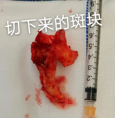 考慮到張大爺既往有腦梗死病史和糖尿病病史,入院后,孫國章副主任團(tuán)隊(duì)為張大爺進(jìn)行了術(shù)前精準(zhǔn)評(píng)估,完善頭部核磁共振、全腦血管造影檢查,并控制好血壓、血糖等各項(xiàng)指標(biāo)。隨后,孫國章副主任在顯微鏡下精準(zhǔn)為張大爺實(shí)施了頸動(dòng)脈內(nèi)膜剝脫術(shù),切除了長度約4cm動(dòng)脈粥樣硬化斑塊。據(jù)了解,由于是在頸動(dòng)脈上做手術(shù),對(duì)手術(shù)技術(shù)及條件要求非常高,孫國章副主任在術(shù)中克服種種困難,才最終憑借豐富的臨床經(jīng)驗(yàn)成功完成此次手術(shù)。