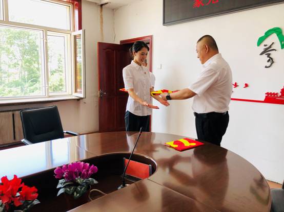 在蒙克山分會場,黨總支書記為各支部書記授予黨旗,一名黨員就是一面旗幟,一個支部就是一座堡壘,一面面鮮紅的黨旗,是一份沉甸甸的責(zé)任與使命。