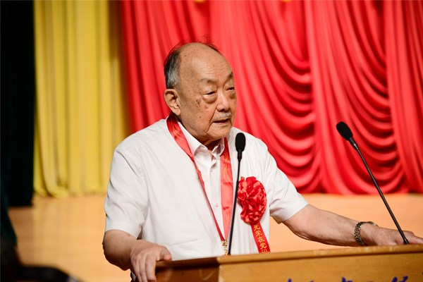 大會為“光榮在黨50年”的老黨員代表頒發(fā)紀(jì)念章,楊士莪院士作為黨齡56年的老黨員,發(fā)表了獲獎感言,他說,“我們這批在黨的關(guān)懷和培養(yǎng)教育下成長起來的一代,在黨的百年生日的時候,說實話心里千言萬語不知從何說起,要不然我就唱兩句現(xiàn)在電視上經(jīng)常聽到的歌曲。”楊院士深情唱響《唱支山歌給黨聽》,他說:“我的聲音雖然不好聽,但是這首歌能夠表達(dá)我的心意。唱支山歌給黨聽,我把黨來比母親……”。楊士莪院士的歌聲讓在場師生非常意外,這首沒有經(jīng)過彩排的歌曲,卻因真情實感走進(jìn)了師生們的心里,在他的帶動下,在場師生也情不自禁地鼓掌打拍跟唱起《唱支山歌給黨聽》,“母親只生了我的身,黨的光輝照我心?!?/span>