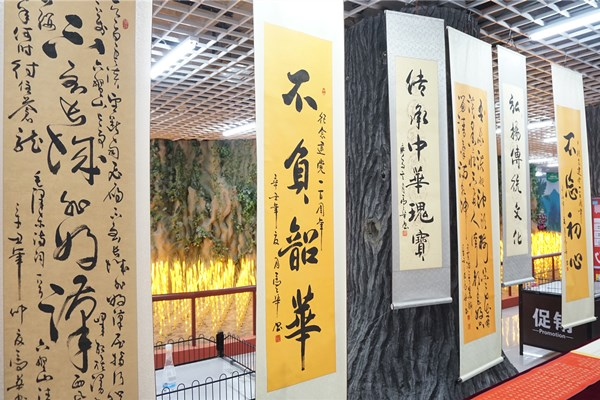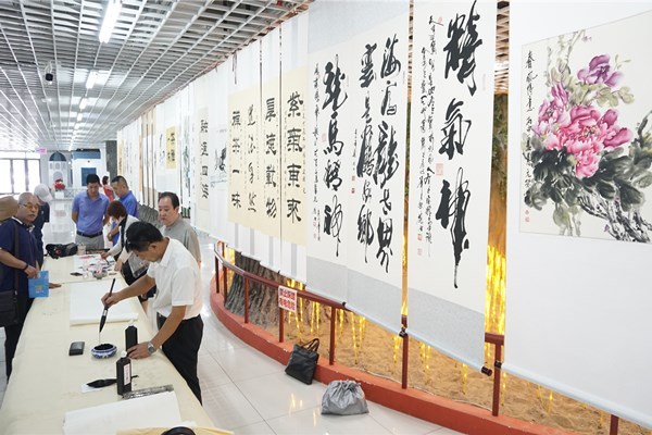 挽袖、研墨、調(diào)色、揮毫,書畫家們進(jìn)行現(xiàn)場書畫創(chuàng)作并交流創(chuàng)作心得。以書言志、以畫寄情,一幅幅極富感染力的書法、繪畫作品,抒發(fā)了對黨的敬愛之情和對祖國的美好祝愿。活動現(xiàn)場共展出書畫作品百余件。