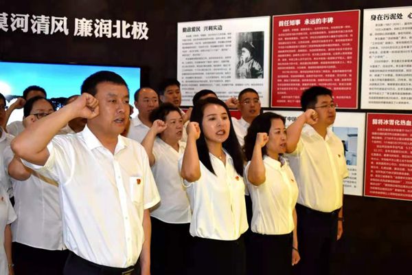 在漠河市廉政教育基地,塔河林業(yè)局研學交流團成員在講解員生動的講解下,依次參觀了“以古鑒今 廉潔中華”、“正風肅紀 馳而不息”、“前車之鑒 警鐘常鳴”、“清正為民 廉潔風范”四個篇章。通過一個個觸目驚心的腐敗案例、一幅幅發(fā)人深省的圖片和當事人的懺悔實況錄像,對現(xiàn)場每一個人給以強烈的心靈震撼,進一步提高了大家對反腐倡廉重大意義的認識和感悟,筑牢防腐拒變思想防線。在深受警示教育的同時,研學交流團全體黨員干部高舉右拳,面對黨旗莊嚴宣誓,重溫入黨誓詞,并在“廉潔宣誓化于心,廉潔承諾重于行”橫幅上鄭重簽下自己的名字,表達了一定要樹牢不忘初心、勇?lián)姑⒘疂崗恼男拍詈蜎Q心。