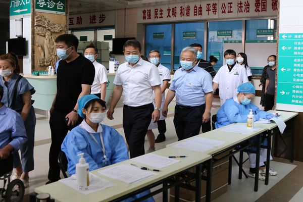 郭宏偉一行先后視察附屬第一醫(yī)院門診預(yù)檢分診處、呼吸科門診、口腔科門診、耳鼻咽喉科門診、心血管病一科病房、核酸采集處、省重大疫情中西醫(yī)結(jié)合救治基地建設(shè)項(xiàng)目施工工地等,并對醫(yī)院在當(dāng)前疫情形勢下,積極行動,主動作為,迅速查短板、補(bǔ)漏點(diǎn),防患于未然,堅決防止院內(nèi)感染所做出的全方位努力給予高度認(rèn)可和充分肯定。
