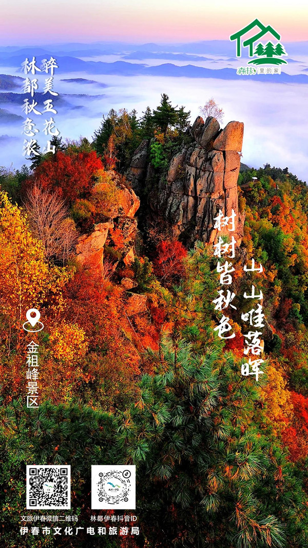 今天,以精美海報的形式為大家推出伊春14處五花山色推薦目的地其中的6處景區(qū)。關(guān)注“文旅伊春”微信公眾號,后續(xù)還將進行五花山海報展播和重點推薦景區(qū)展播。