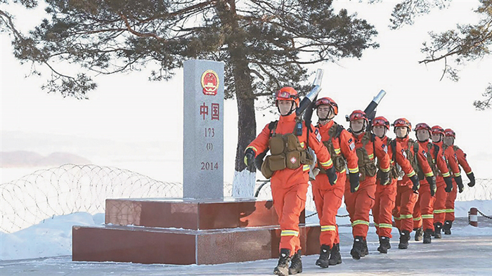 8時(shí)整,漠河市大隊(duì)十三中隊(duì)消防救援人員準(zhǔn)備完畢后,與北極派出所民警一同踏上了北極村邊境線及周邊林區(qū)進(jìn)行巡護(hù)。