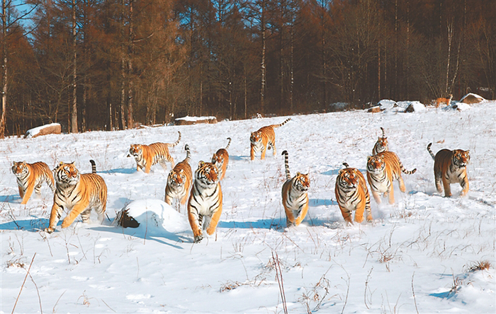 在這片冰天雪地之中,還有非常可愛的動(dòng)物。在東北虎林園和橫道東北虎林園中,雪地“跑酷”的東北虎盡展百獸之王的颯爽雄姿;齊齊哈爾扎龍國(guó)家級(jí)自然保護(hù)區(qū)的丹頂鶴,雪地起舞別有風(fēng)情;亞布力熊貓館中翻滾嬉鬧的佑佑和思嘉萌趣可愛;哈爾濱極地公園的網(wǎng)紅“淘學(xué)企鵝”,在雪地散步憨態(tài)可掬;野生“狍子君”在大興安嶺的林中穿梭,聽到聲音還會(huì)好奇的回頭……這些龍江冬日里的小可愛們,活力十足,讓人心生喜愛。