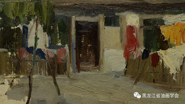 《農家小院》 13.5×24cm 紙本油彩 1963