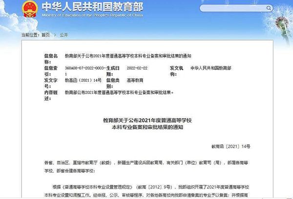 黑龍江經(jīng)濟(jì)網(wǎng)訊(黑龍江日?qǐng)?bào)全媒體見(jiàn)習(xí)記者董廣碩 商祺)根據(jù)《普通高等學(xué)校本科專業(yè)設(shè)置管理規(guī)定》,教育部組織開展了2021年度普通高等學(xué)校本科專業(yè)設(shè)置和調(diào)整工作。經(jīng)申報(bào)、公示、審核等程序,近日,教育部公布了2021年度普通高等學(xué)校本科專業(yè)備案和審批結(jié)果。哈爾濱工業(yè)大學(xué)新增本科專業(yè)7個(gè),其中新增審批專業(yè)3個(gè)、新增備案專業(yè)4個(gè)。