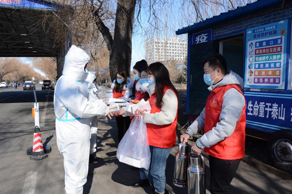 樺川縣稅務(wù)局組成青年志愿服務(wù)隊,攜帶保溫杯、熱水、水果等慰問品,深入樺川縣入口防疫卡點,慰問堅守在疫情防控一線的工作人員。青年志愿者們詳細(xì)詢問卡點防寒保暖、飲食安排等情況,對他們舍小家為大家、無私奉獻(xiàn)、敢于擔(dān)當(dāng)?shù)木窠o予高度贊揚,向他們送去關(guān)心和問候,叮囑他們做好自身防護(hù),合理安排休息時間。