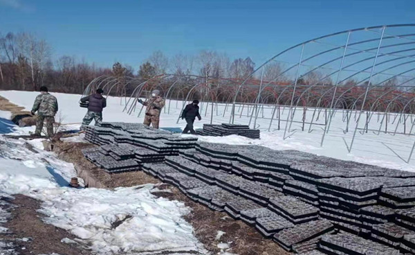 為了能更好地完成2022年的育苗生產(chǎn)計劃,苗圃領導班子帶領單位業(yè)務骨干到苗圃地和輕基質(zhì)生產(chǎn)車間進行實地調(diào)研,由于氣候原因,圃地積雪未消,生產(chǎn)用泥炭土凍結嚴重,輕基質(zhì)生產(chǎn)車間沒有供暖設備,無法在苗圃開展輕基質(zhì)容器杯生產(chǎn)工作。