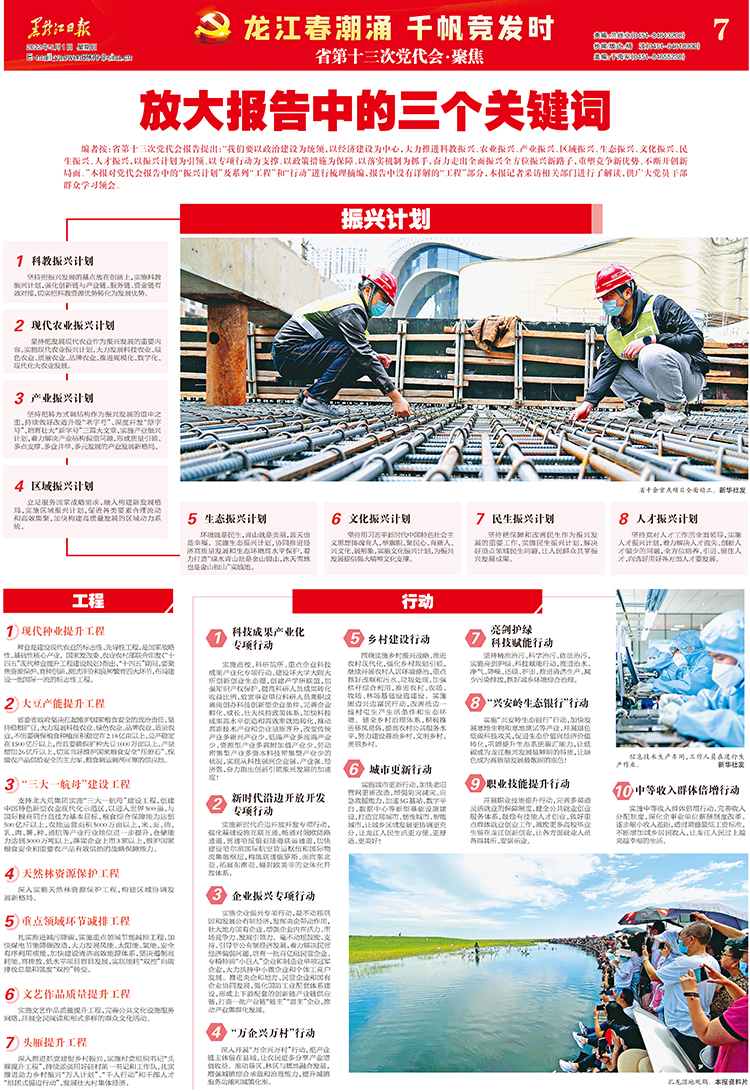 編者按:省第十三次黨代會報告提出:“我們要以政治建設(shè)為統(tǒng)領(lǐng),以經(jīng)濟(jì)建設(shè)為中心,大力推進(jìn)科教振興、農(nóng)業(yè)振興、產(chǎn)業(yè)振興、區(qū)域振興、生態(tài)振興、文化振興、民生振興、人才振興,以振興計劃為引領(lǐng)、以專項行動為支撐、以政策措施為保障、以落實機制為抓手,奮力走出全面振興全方位振興新路子,重塑競爭新優(yōu)勢、不斷開創(chuàng)新局面。”本報對黨代會報告中的“振興計劃”及系列“工程”和“行動”進(jìn)行梳理摘編,報告中沒有詳解的“工程”部分,本報記者采訪相關(guān)部門進(jìn)行了解讀,供廣大黨員干部群眾學(xué)習(xí)領(lǐng)會。