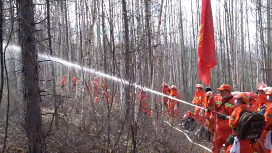 鏡頭二:由林業(yè)局黨委書記魯智勇,黨委委員、工會(huì)主席任志遠(yuǎn)組成的森林防火前線指揮部,根據(jù)無(wú)人機(jī)回傳的實(shí)時(shí)畫面,果斷下達(dá)撲救命令。他們結(jié)合氣象條件,采取“兩翼對(duì)進(jìn),鉗形夾擊”的撲火戰(zhàn)術(shù),運(yùn)用常規(guī)風(fēng)力滅火和以水滅火相配合的方式組織撲救。