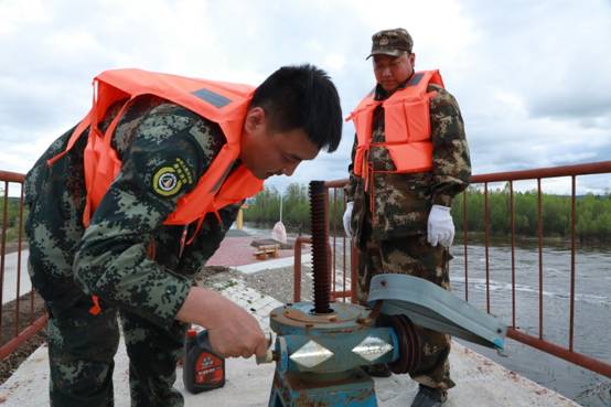 阿木爾林業(yè)局防汛人員關閉閘門,防止因額木爾河水上漲倒灌居民區(qū)(王力 攝)