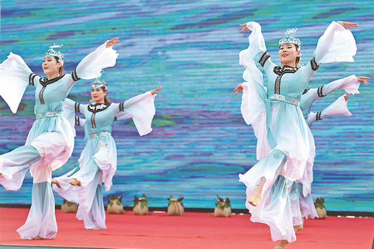 啟動(dòng)儀式后的赫哲族專(zhuān)場(chǎng)演出。黑龍江日?qǐng)?bào)全媒體記者 荊天旭攝
