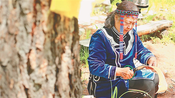 在新生鄂倫春族鄉(xiāng),舞蹈演員們伴隨著鼓聲跳動著,生動展示著鄂倫春族舞蹈和服飾。在民族體驗區(qū),非遺傳承人拿出看家本領,紛紛展示非遺魅力,鄂倫春族剪紙、樺樹皮制作、刺繡、皮袍制作……鄂倫春族原汁原味的傳統(tǒng)技藝一一呈現(xiàn)眼前。