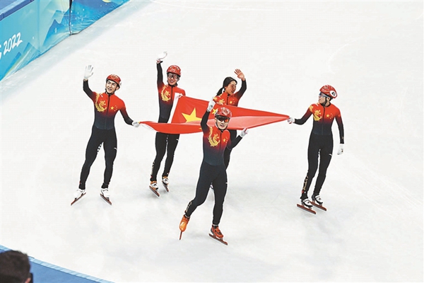 北京冬奧會短道速滑混合團體接力中國隊摘金。