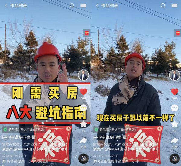 “松北這個小區(qū),現(xiàn)房7000起步”、“這里是江南核心商業(yè)圈,通勤便利”、“這可以說是哈爾濱二環(huán)旁配套設施最全的樓盤”……晚上8點,每當夜幕降臨,房產(chǎn)主播小宇(快手ID:xysf0453)會準時出現(xiàn)在快手平臺直播間,為廣大有購房需求的客戶答疑解惑。