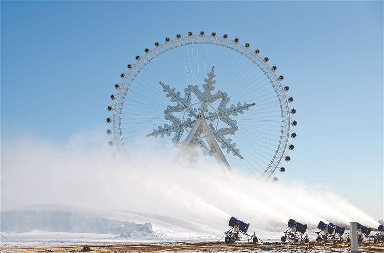 人工造雪機齊噴射。本報記者 郭俊峰攝