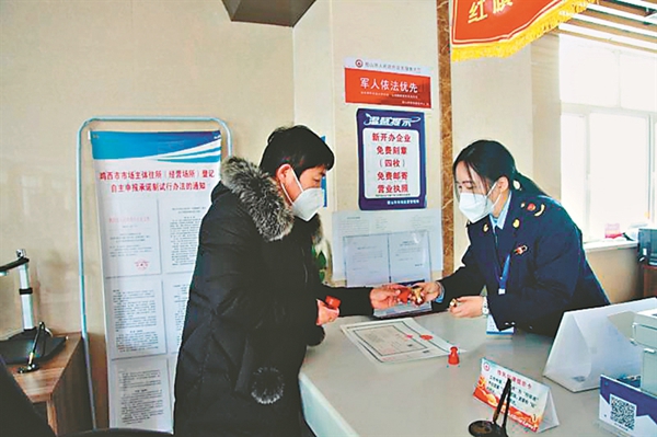 如今,凡是在密山市新注冊(cè)的企業(yè),都會(huì)享受到由密山市政務(wù)服務(wù)中心特制的 “免費(fèi)+”服務(wù)套餐——即為新注冊(cè)的企業(yè)免費(fèi)刻章、免費(fèi)復(fù)印、免費(fèi)快遞。2021年6月至今,密山市為新注冊(cè)的390家企業(yè)免費(fèi)刻制印章1560枚,免費(fèi)快寄印章、營業(yè)執(zhí)照、房產(chǎn)證等1000余件,同時(shí)還為500多戶企業(yè)、30000多名群眾免費(fèi)復(fù)印各種材料。