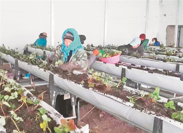 “早上7點(diǎn)去,下午4點(diǎn)多就收工回來了,離家近,每天能賺150元,挺好的?!睆埥鹣阏f。走進(jìn)產(chǎn)業(yè)園的草莓溫室大棚,如張金香一般來自谷大村的女工們正認(rèn)真地進(jìn)行著手中的工作。移栽、覆膜、澆水……14萬株蘊(yùn)含著期待與希望的草莓秧苗正在茁壯成長(zhǎng)。