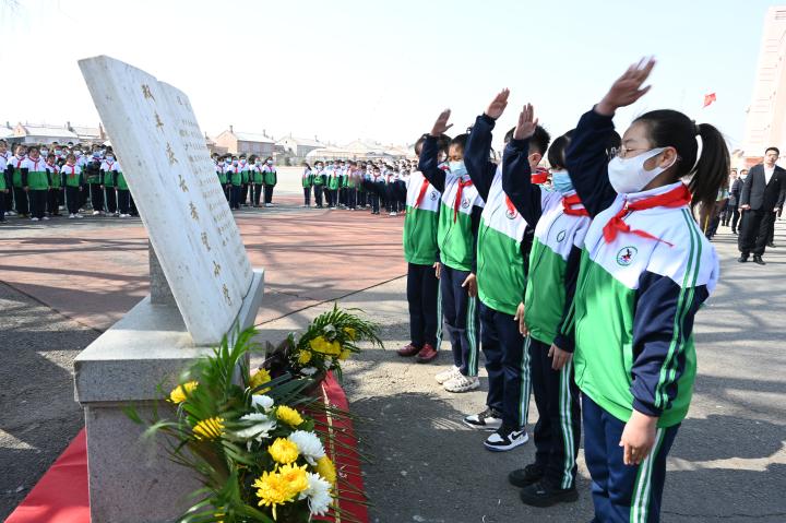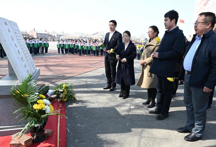 3月29日,不僅是“張慶云紀念展館”開館十周年,也是慶云希望小學捐建者——百歲老人張慶云逝世12周年的日子。儀式上,全體共同悼念老人,領(lǐng)導(dǎo)嘉賓及慶云希望小學學生代表向張慶云紀念碑敬獻鮮花,以示對慶云老人的感恩、敬重和懷念之情。隨后,團省委副書記張濤為張慶云(焦珊代領(lǐng))頒發(fā)“龍江希望工程三十年公益之星”榮譽證書;為哈爾濱市阿城區(qū)雙豐慶云希望小學頒發(fā)“龍江希望工程三十年學校之星”榮譽證書。