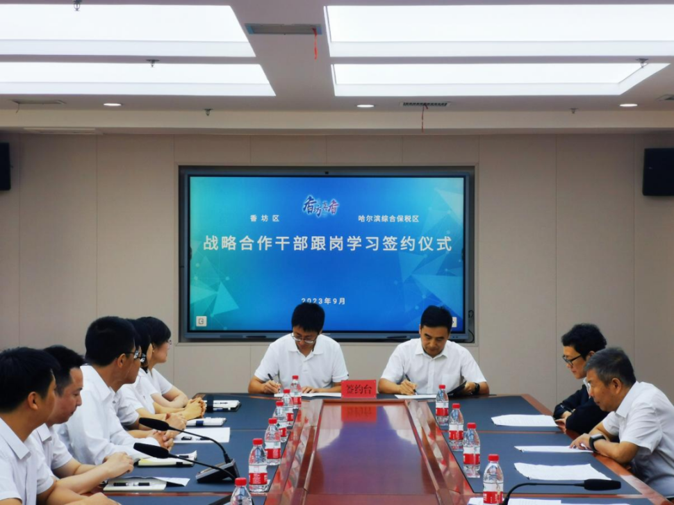 黑龍江經(jīng)濟網(wǎng)訊(記者商祺)9月8日上午,哈爾濱綜合保稅區(qū)管委會與香坊區(qū)委組織部舉行戰(zhàn)略合作協(xié)議簽約儀式暨干部跟崗學(xué)習(xí)對接會。哈爾濱綜保區(qū)管委會常務(wù)副主任、黨工委副書記邸凱與香坊區(qū)委組織部部長楊鐵巖出席會議并代表雙方簽約。相關(guān)單位主要領(lǐng)導(dǎo)及10余名跟崗學(xué)習(xí)干部參加會議。