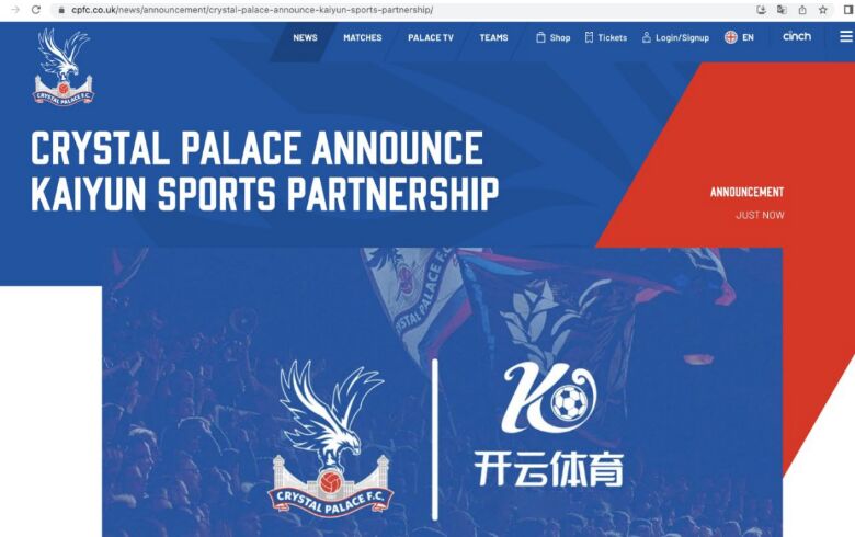 榮耀登場!開云體育成為水晶宮俱樂部官方袖標(biāo)贊助商