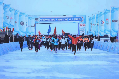 中國東極(撫遠·黑瞎子島)冰上馬拉松賽已經(jīng)連續(xù)五屆在撫遠市舉辦,憑借地域唯一性和極限挑戰(zhàn)性,成為全球五大冰上馬拉松之一,開創(chuàng)中國極限冰雪馬拉松運動的先河。本屆賽事由黑龍江省體育局、佳木斯市人民政府主辦,省政府黑瞎子島建設和管理委員會、撫遠市人民政府承辦。中國奧委會副主席、中田協(xié)名譽主席段世杰前往比賽開幕式鳴槍。賽事設有全程馬拉松、半程馬拉松、新年歡樂跑三個項目。清晨7點,撫遠市的氣溫達到了零下23.3攝氏度,選手們紛紛帶上防風面罩、保暖帽、手套、太陽鏡、防滑冰爪等應對極端嚴寒環(huán)境下的特殊裝備,在全程42.195公里的冰賽道上,徒步穿越冰雪世界,體驗當?shù)鬲毺乇┪幕兔袼罪L情,品嘗賽道補給站提供的熱氣騰騰的鱘鰉魚鍋、鮮鯽魚湯等地方特色補給品,補充能量抵御嚴寒。