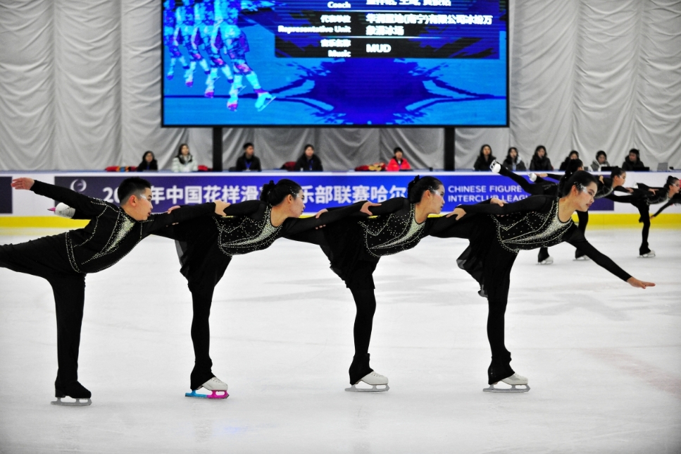當日,參賽選手進行了精英組隊列滑、男女單人自由滑和短節(jié)目比賽,大眾組則進行了隊列滑、男女單人項目自由滑表演和娛樂自由滑表演。