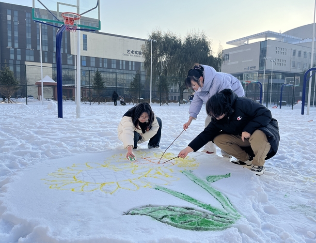 太陽(yáng)花在雪地中“綻放”,蘑菇在雪中“生長(zhǎng)”……近日,走進(jìn)哈爾濱學(xué)院藝術(shù)校區(qū)運(yùn)動(dòng)場(chǎng),一件件色彩斑斕的涂鴉作品在校園雪場(chǎng)上格外搶眼,為校園文化建設(shè)增添了一抹亮麗的冬日風(fēng)景線。