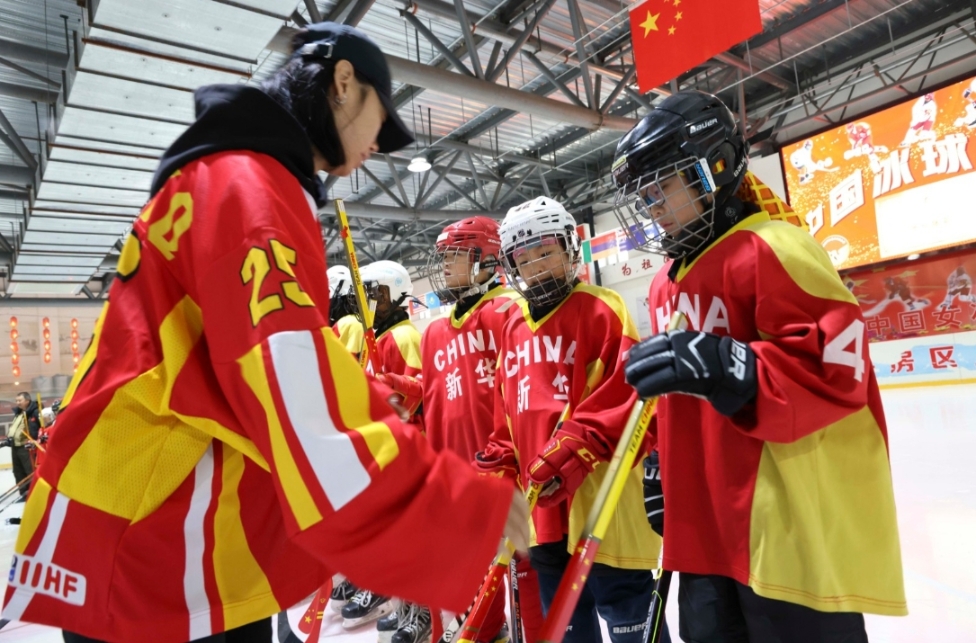 近日,中國(guó)冰球協(xié)會(huì)帶領(lǐng)中國(guó)女子冰球隊(duì)13名隊(duì)員向南城一小捐贈(zèng)100支冰球桿。10歲的唐昕悅從身著中國(guó)國(guó)家女子冰球隊(duì)隊(duì)服的姐姐手中接過(guò)冰球桿,愛(ài)不釋手。