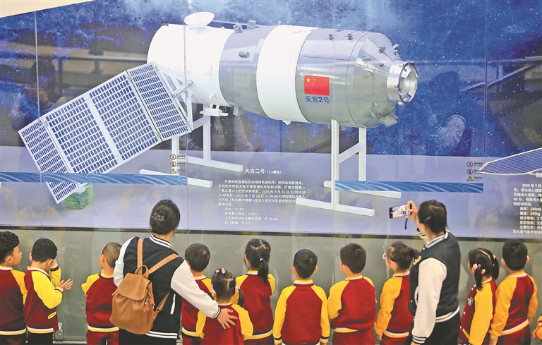 4月24日是第九個(gè)“中國(guó)航天日”。哈爾濱工業(yè)大學(xué)航天館里,前來參觀的群眾絡(luò)繹不絕。哈工大附中的幾十位同學(xué)興致勃勃地參觀了室外航天主題文化園,在長(zhǎng)征一號(hào)運(yùn)載火箭、東風(fēng)二號(hào)地對(duì)地彈道導(dǎo)彈、資源號(hào)返回艙等大型實(shí)物展品前長(zhǎng)久駐足觀看。在航天館內(nèi),他們還認(rèn)真聆聽了多位教授的航天知識(shí)講座,不斷為精彩的內(nèi)容鼓掌。