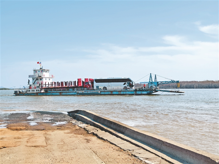 8時,首班輪渡船乘載著一輛中國客車和四輛中國貨車,經(jīng)饒河口岸夏季碼頭出境駛向俄羅斯波克羅夫卡口岸碼頭,標(biāo)志著饒河口岸明水期客貨運輸正式通關(guān)。