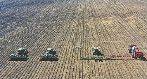 近日,在尖山農場第一管理區(qū)北14號大豆地,4臺大型機車整裝待發(fā),充分利用晴好天氣展開播種作業(yè),標志著尖山農場播種工作全面展開。