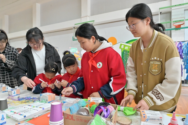 巧手匠心,“哈護(hù)”成長。孩子們將“希望守護(hù)健康 哈藥伴我成長”公益項目的“哈藥小藍(lán)瓶”,制作成環(huán)保手工風(fēng)鈴,“小藍(lán)瓶”搖身一變,成了精美的環(huán)保手工作品。微風(fēng)吹過,叮叮當(dāng)當(dāng)?shù)乃{(lán)色風(fēng)鈴搖曳在風(fēng)中,鈴聲好似是風(fēng)對孩子們的節(jié)日祝福。