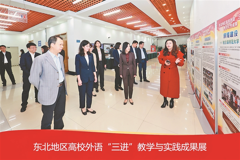 近年來,東北高校積極探索、創(chuàng)新實(shí)踐,積累了豐富的經(jīng)驗(yàn),在全面推進(jìn)《習(xí)近平談治國理政》多語種版本進(jìn)高校、進(jìn)教材、進(jìn)課堂工作中取得了豐碩的成果。會議期間,三省一區(qū)教育廳共同開展了外語“三進(jìn)”教學(xué)工作成果展覽,全面展示了35所高校在保障舉措、課程建設(shè)、師資培養(yǎng)、實(shí)踐成效和教學(xué)工作等方面的成果。