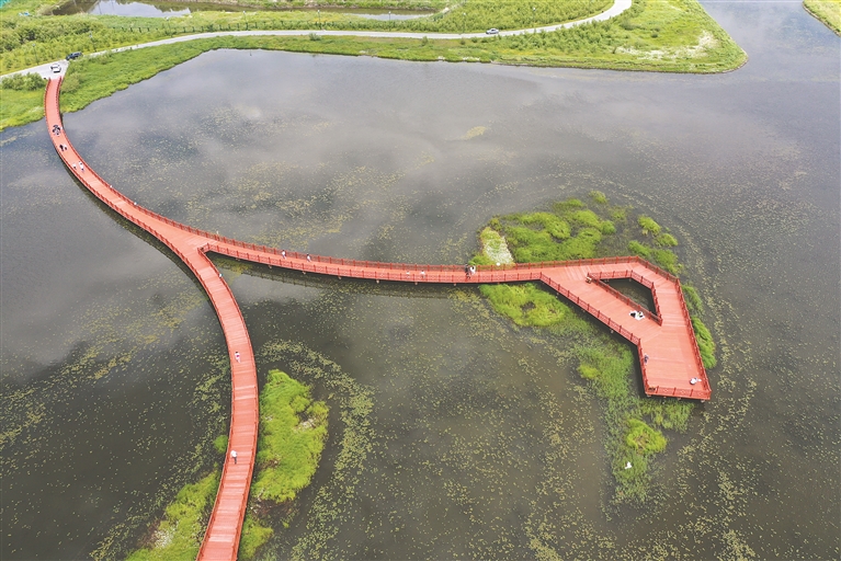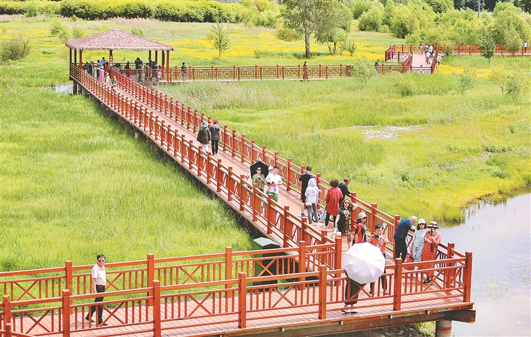 10日,哈爾濱市群力外灘濕地公園內,許多市民前來踏青游玩。持續(xù)多日的降雨,使得濕地內的植物生長得更加茂盛,綠樹如茵、芳草遍地。人們有的走上蜿蜒的棧道觀賞野生鳥類和各種水生植物,有的坐在亭臺里休憩、野餐。孩子們在草地上奔跑著、歡笑著,享受踏青帶來的快樂。