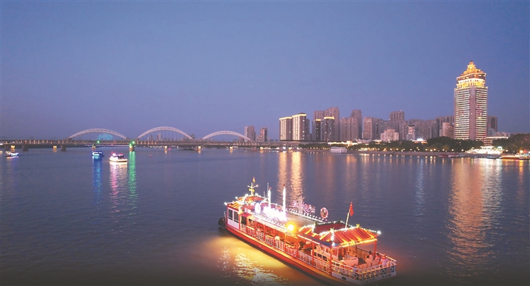 夜晚的松花江上,涼風(fēng)習(xí)習(xí)、碧波蕩漾,乘坐游船吹著江風(fēng)欣賞沿途迷人的風(fēng)光,成為哈爾濱市民及游客消暑納涼的佳選。1日,哈爾濱市舉辦“濱江夜韻·夜游松花江”主題活動,精心打造的8艘亮化夜游船只,巧妙融合了燈光藝術(shù)、音樂、文化表演等元素,為市民和游客奉上獨具特色的夜游體驗。