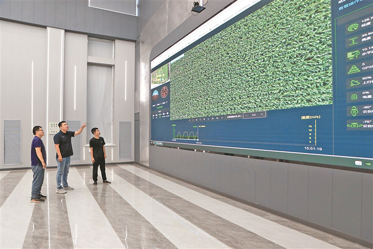 技術人員在數(shù)字農(nóng)業(yè)指揮大廳分析作物長勢。任忠良攝