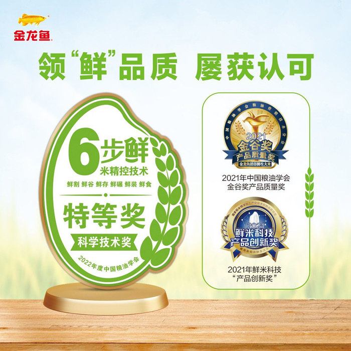 這不是金龍魚6步鮮大米第一次獲得金獎殊榮。6步鮮大米采用的稻谷“6步鮮米精控技術(shù)”創(chuàng)新體系開發(fā)及產(chǎn)業(yè)化,在2022年獲得了中國糧油學會科學技術(shù)獎特等獎。這也是中國糧油學會科學技術(shù)獎當年惟一一個“特等獎”項,含金量可見一斑。