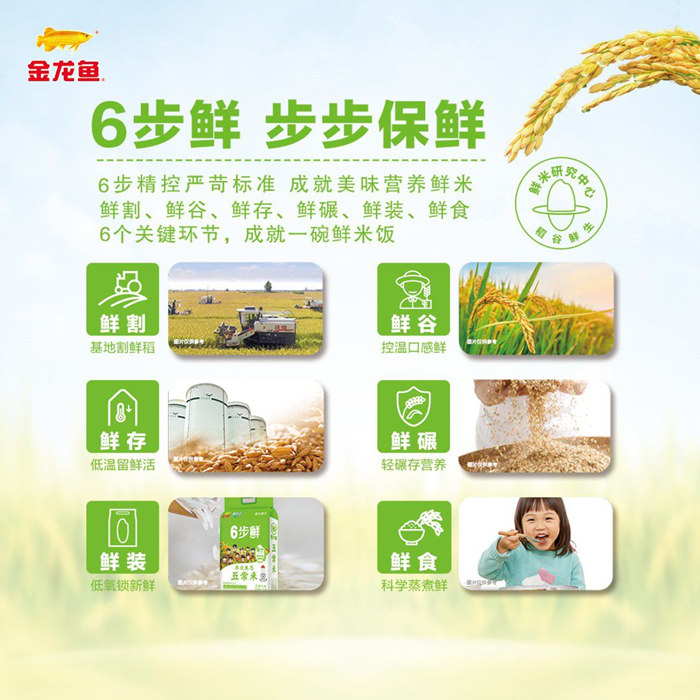 金龍魚的成績,離不開其長期以來對“新質(zhì)生產(chǎn)力”的深耕,金龍魚采用的稻谷6步鮮米精控技術(shù),便是科技創(chuàng)新在農(nóng)業(yè)領(lǐng)域的生動體現(xiàn)。在“鮮割、鮮谷、鮮存、鮮碾、鮮裝、鮮食”的各關(guān)鍵環(huán)節(jié)上,實現(xiàn)了田間到餐桌的全鏈路保鮮,也為稻谷的基因檢測、降低水分、科學存儲、適度加工、即碾即裝等重要階段提供了嚴苛保障。