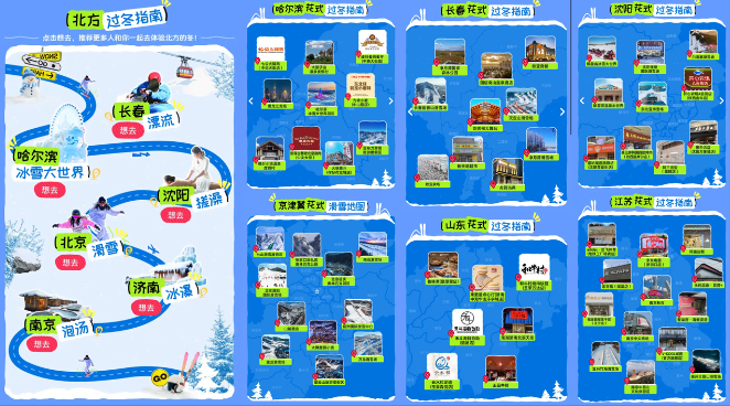 北方是冬季“冰雪旅游”重要目的地?;顒悠陂g,抖音生活服務(wù)將聯(lián)動多座北方城市官方文旅賬號,發(fā)布城市過冬邀請函,以短視頻、海報等形式推介當(dāng)?shù)匚穆觅Y源。多位明星將加入到活動之中,為自己的家鄉(xiāng)城市“搶人”。長白山萬達、將軍山滑雪場、熱雪奇跡、耀雪、西嶺雪山、云上草原、熱市溫泉等眾多頭部商家也將在活動期間以短視頻、直播、優(yōu)惠等形式吸引網(wǎng)友打卡。