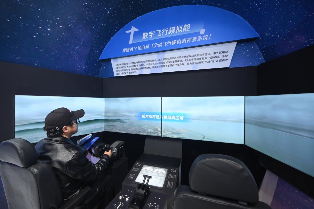 “只需要推動(dòng)操縱桿,就能操作系統(tǒng),體驗(yàn)民航飛行員第一視角下、擬真的訓(xùn)練場(chǎng)景……”在展區(qū)前方,由南航自研虛像顯示技術(shù)和騰訊自研游戲引擎技術(shù)共同打造的全動(dòng)飛行模擬機(jī)視景系統(tǒng),吸引眾多參觀者體驗(yàn)?;隍v訊自研游戲引擎,系統(tǒng)首次實(shí)現(xiàn)全局動(dòng)態(tài)光照與地球級(jí)場(chǎng)景超寫(xiě)實(shí)渲染,多邊形生成面數(shù)較之前提升380倍、貼圖精細(xì)度提升100倍,助力實(shí)現(xiàn)我國(guó)民航關(guān)鍵技術(shù)突破。