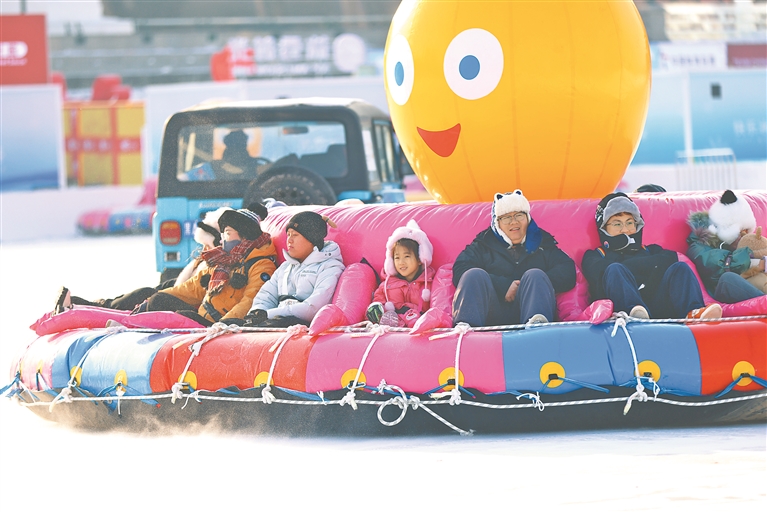 記者站在堤壩望向松花江面看到,江面被有序劃分為多片區(qū)域,每片區(qū)域都是一個(gè)歡樂(lè)場(chǎng),游客可以體驗(yàn)“瘋狂八爪魚(yú)”、大滑梯、龐巴迪賽車、滑冰,乘坐馬車、冰雪龍舟游覽園區(qū),還可以走進(jìn)“馴鹿部落”體驗(yàn)喂食馴鹿的樂(lè)趣。同時(shí),熱飲屋、文創(chuàng)店、寄存處、餐飲店、防寒用品攤位等相關(guān)配套服務(wù)一應(yīng)俱全。