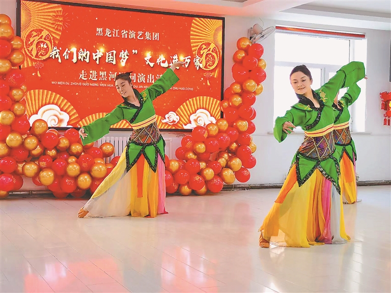 本報(bào)21日訊(王靜鉬 記者 邵晶巖)21日,省演藝集團(tuán)演職人員深入黑河愛(ài)輝區(qū)四個(gè)社區(qū)開(kāi)展“我們的中國(guó)夢(mèng)”文化進(jìn)萬(wàn)家——走進(jìn)黑河活動(dòng),以群眾喜聞樂(lè)見(jiàn)的形式,為群眾送來(lái)精彩的文藝演出和新春祝福。