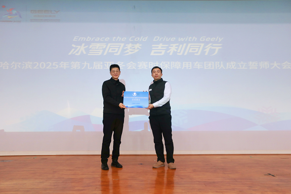 在莊重而熱烈的氛圍中,現(xiàn)場隆重舉行了乘用車保障團隊授旗儀式。駕駛員們整齊列隊,許下了鄭重的承諾:“精準調(diào)度,安全駕駛,嚴格守時,真情服務。高效整備,細致維護,保障有力,穩(wěn)健運行。全力實現(xiàn):零投訴、零延誤、零事故。用真情護航,用智慧開道,冰雪同夢,吉利同行?!?/p>