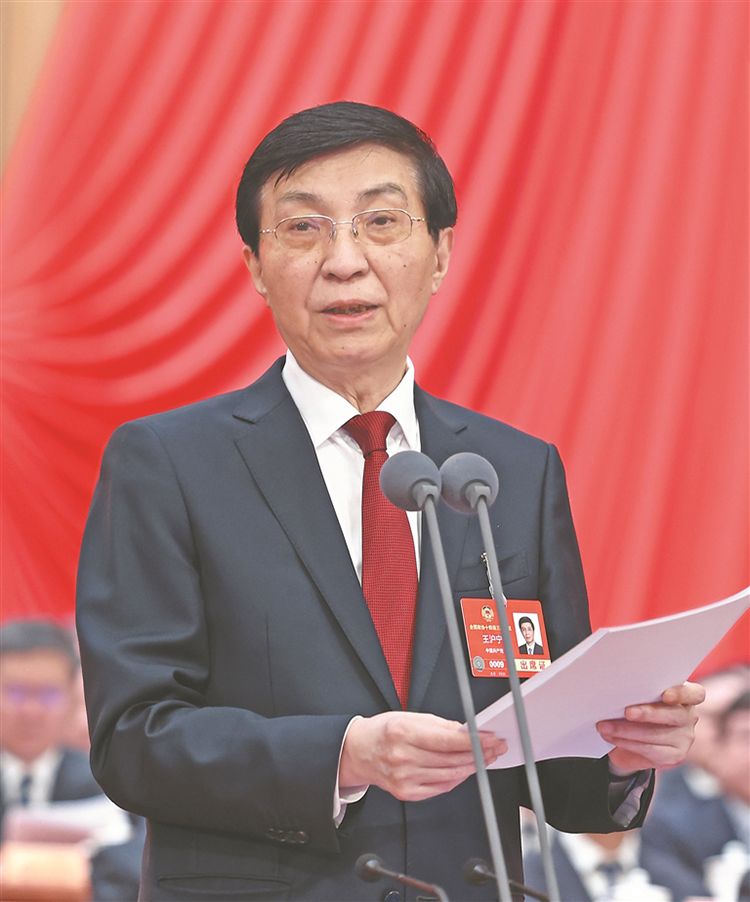 全國政協(xié)主席王滬寧主持閉幕會(huì)并講話。 新華社記者 劉衛(wèi)兵攝