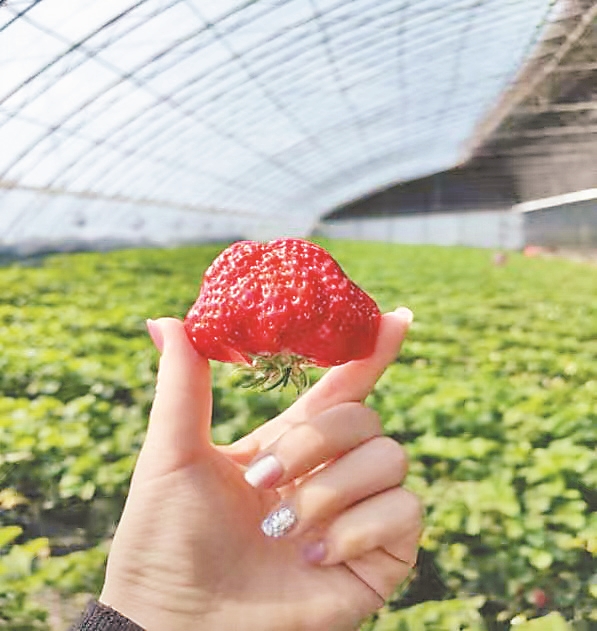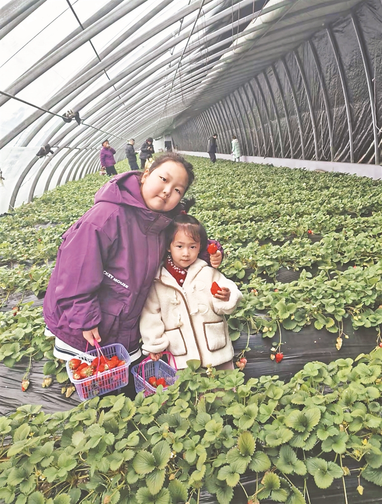 據(jù)園區(qū)負責人張立元介紹,2月份以來,日均接待游客超過100人次,周末時人數(shù)成倍增長。大棚內(nèi),草莓占地5畝,通過自主育苗、全程采用無公害種植技術等方式,產(chǎn)量和質量實現(xiàn)雙提升,年產(chǎn)量約6000斤。